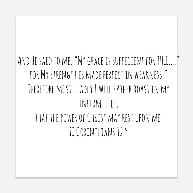 “And lest I should be exalted above measure by the abundance of the revelations, a thorn in the flesh was given to me, a messenger of Satan to buffet me, lest I be exalted above measure. Concerning this thing I pleaded with the Lord three times that it might depart from me. And He said to me, “My grace is sufficient for you, for My strength is made perfect in weakness.” Therefore most gladly I will rather boast in my infirmities, that the power of Christ may rest upon me.”II Corinthians 12:7-9 NKJV